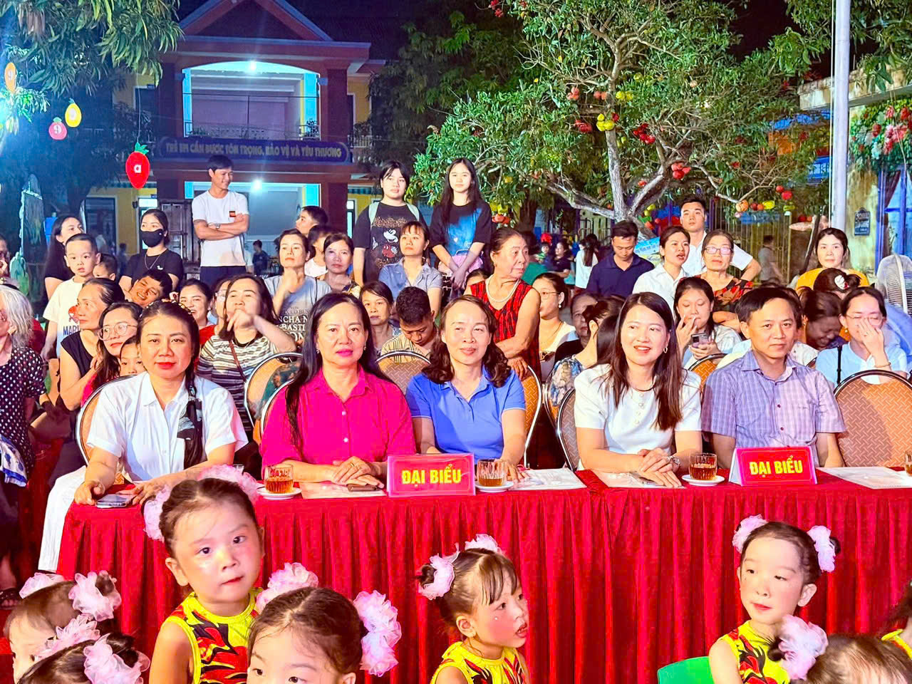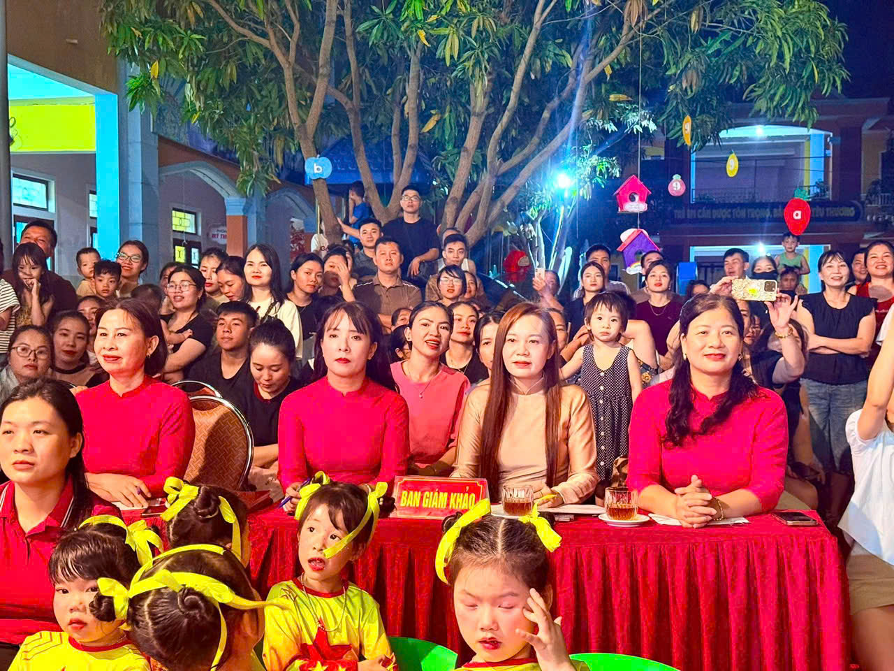 + Nhà giáo Trần Thị Hoa Hường - Chuyên viên phòng GDMN Công tác HSSV. * Về phía lãnh đạo Phường Thành Sen: + Nhà giáo ưu tú Trần Thị Thủy Nga - ủy viên ban thường vụ, Phó chủ tịch UBND phường Thành sen. + Đ/c Nguyễn Trọng Đức chuyên viên phòng văn hóa xã hội Phường Thành Sen. * Đại diện hội cha mẹ học sinh + Bố: Dương Việt Hùng, Trưởng ban đại diện cha mẹ học sinh năm học 2025-2026, bố: Trương Tuấn Anh, mẹ: Trương Thị Hồng thường trực ban đại diện CMHS cùng các đại diện phụ huynh trong BCH CMHS các lớp. * Về phía nhà trường + Cô: Trần Thị Thạch - BT chi bộ - HT, cùng các cô giáo trong BGH nhà trường. * Về thành phần ban giám giảo: + Cô Trần Thị Thạch- Bí thư Chi bộ- Hiệu trưởng- Trưởng ban + Cô Võ Thị Lệ Thu- Trung tâm erobic sao vàng- Thành viên + Cô Trần Thị Khánh Hòe- Phó Hiệu trưởng + Cô Nguyễn Thị Xoan- Phó Hiệu trưởng- Thư ký * Cùng toàn thể cán bộ, giáo viên và các em học sinh.
