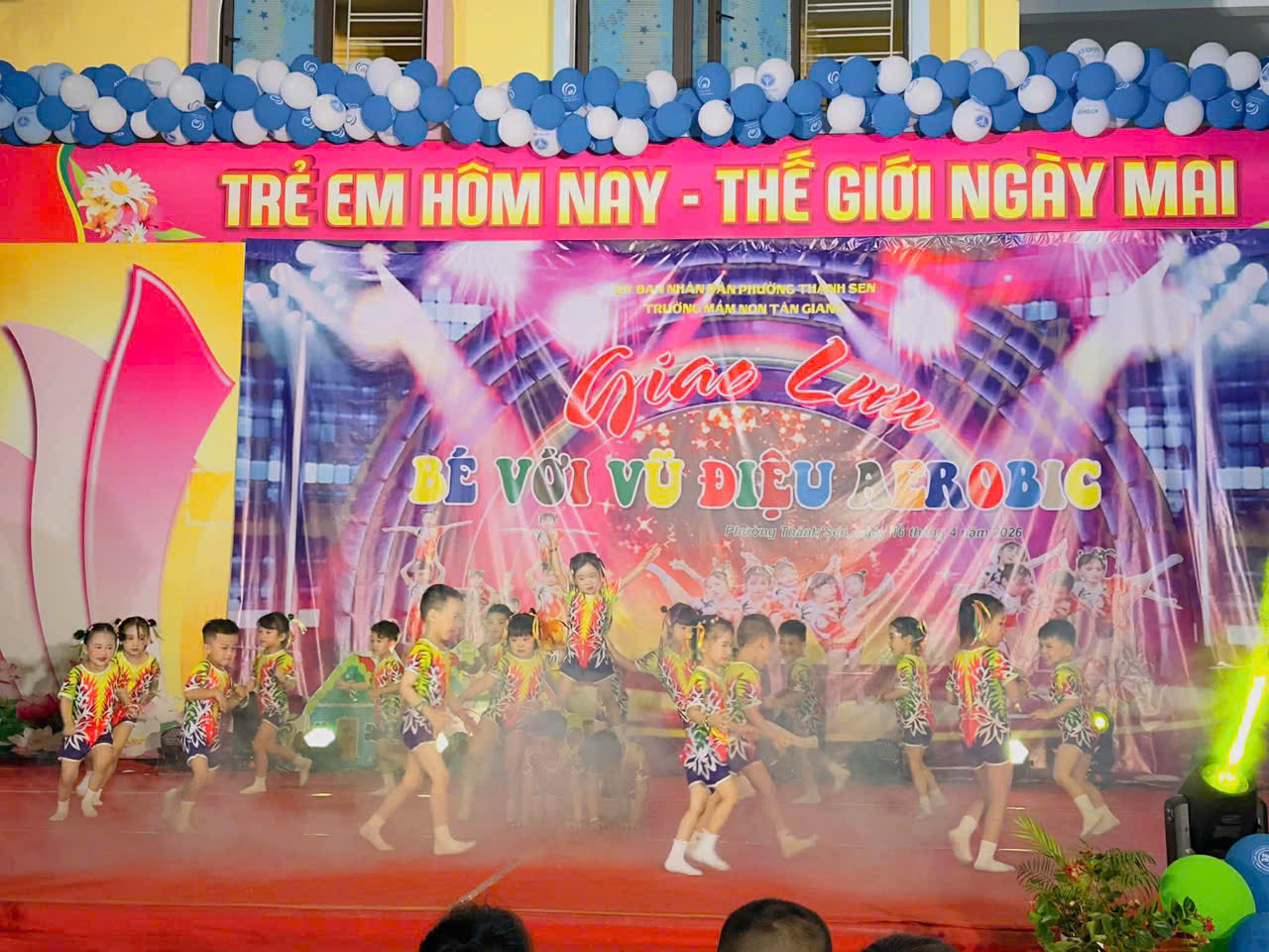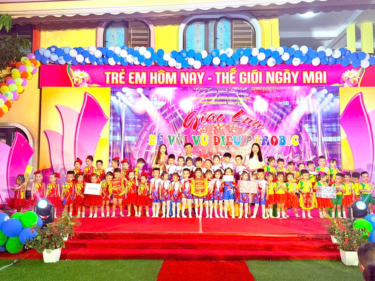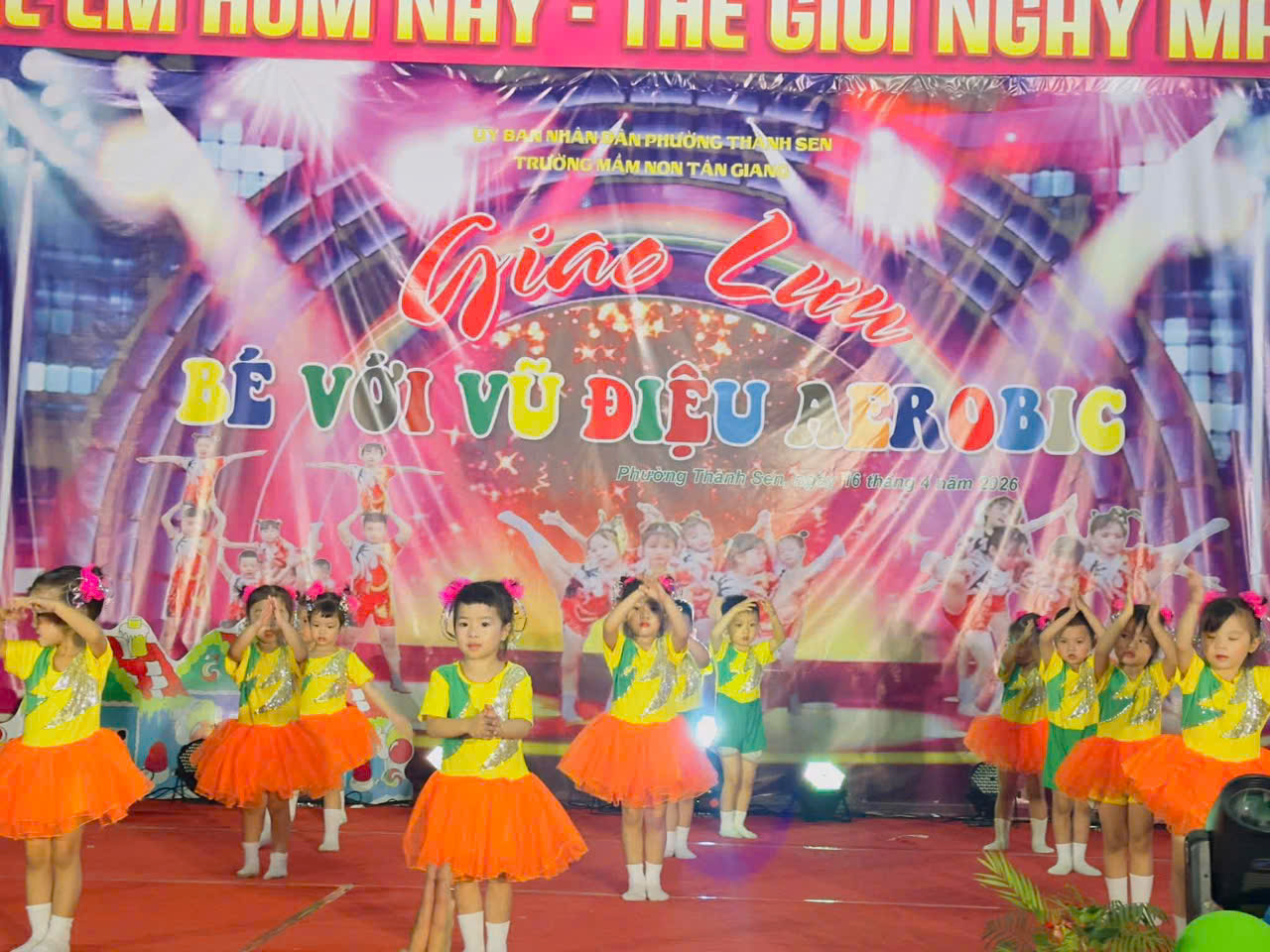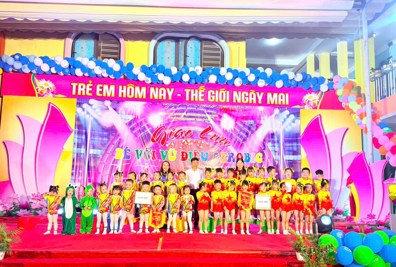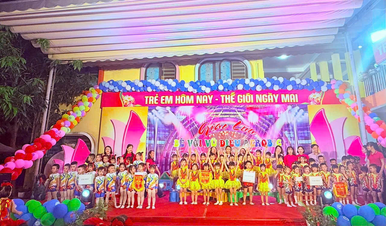 Thực hiện kế hoạch hoạt động năm học, hôm nay, ngày 16 tháng 4 năm 2026, Trường Mầm non Tân Giang đã tổ chức thành công chương trình giao lưu aerobic TỎA SÁNG TÀI NĂNG NHÍvới sự tham gia sôi nổi của các lớp.