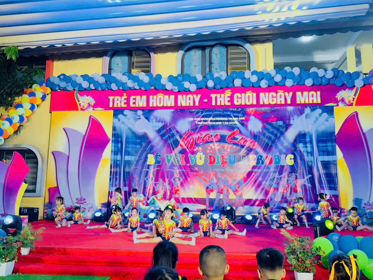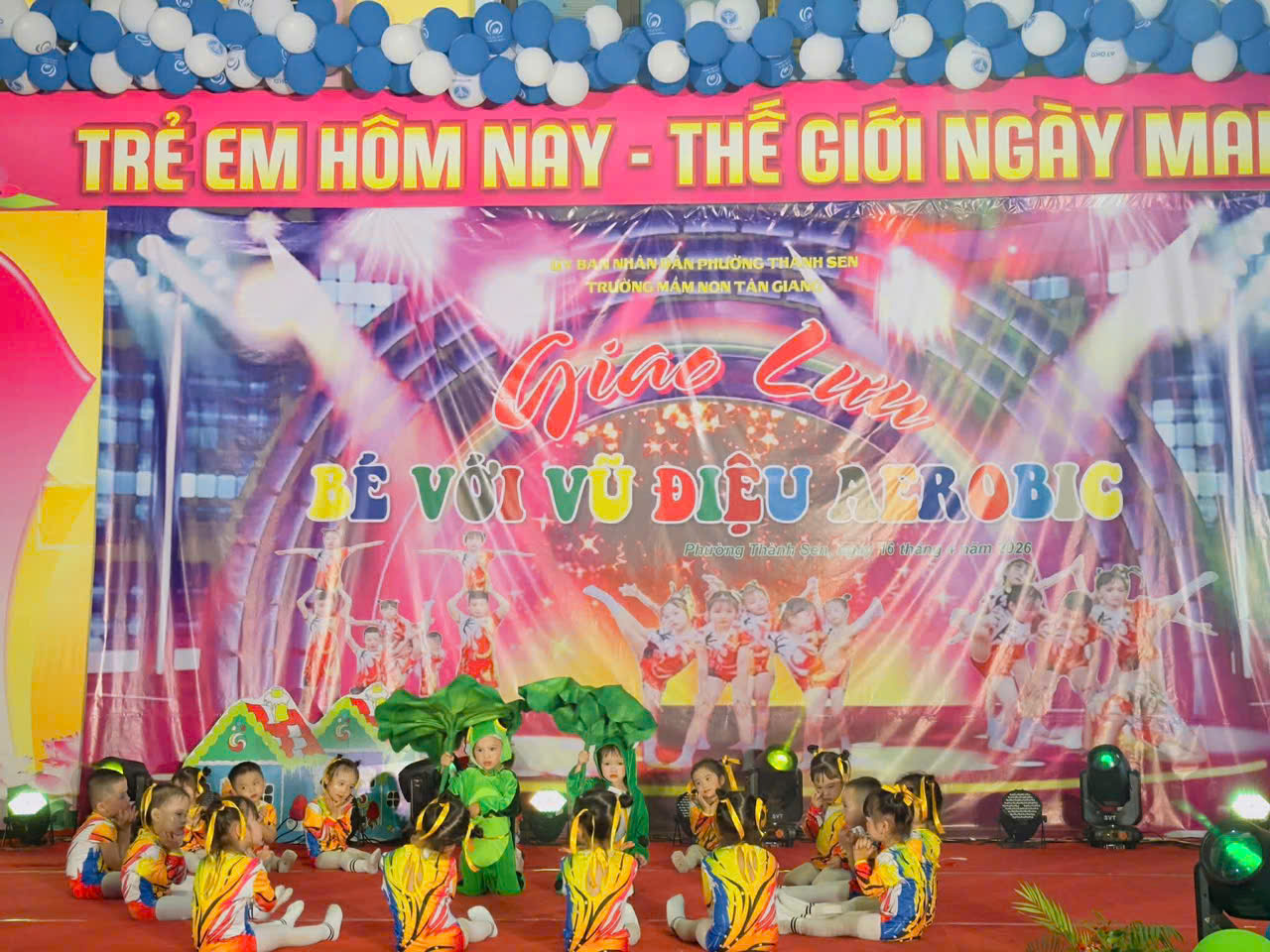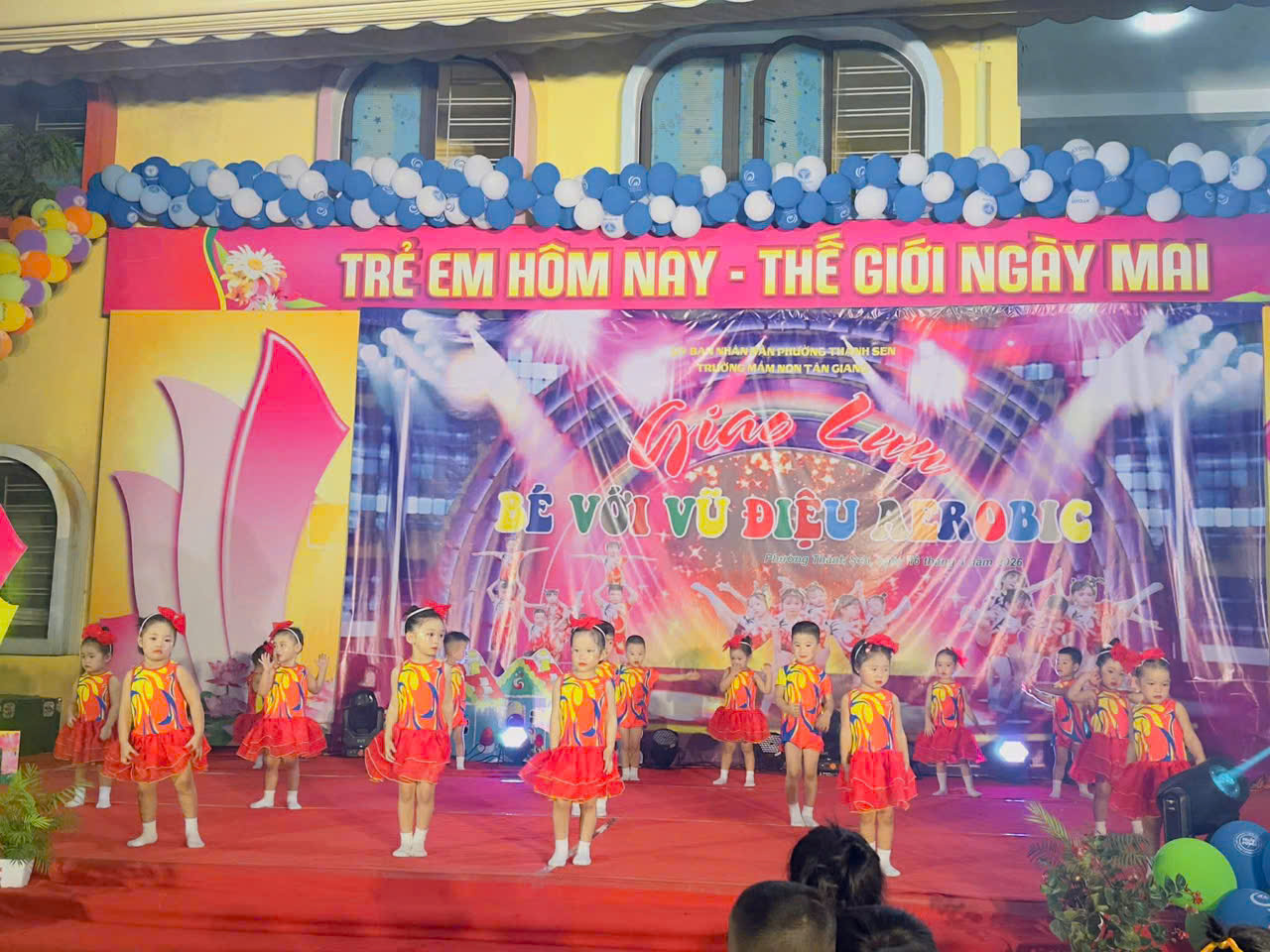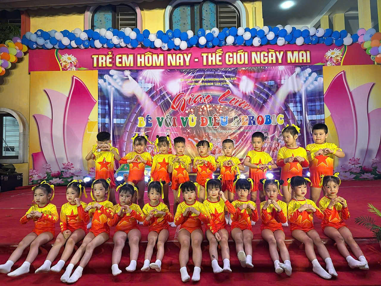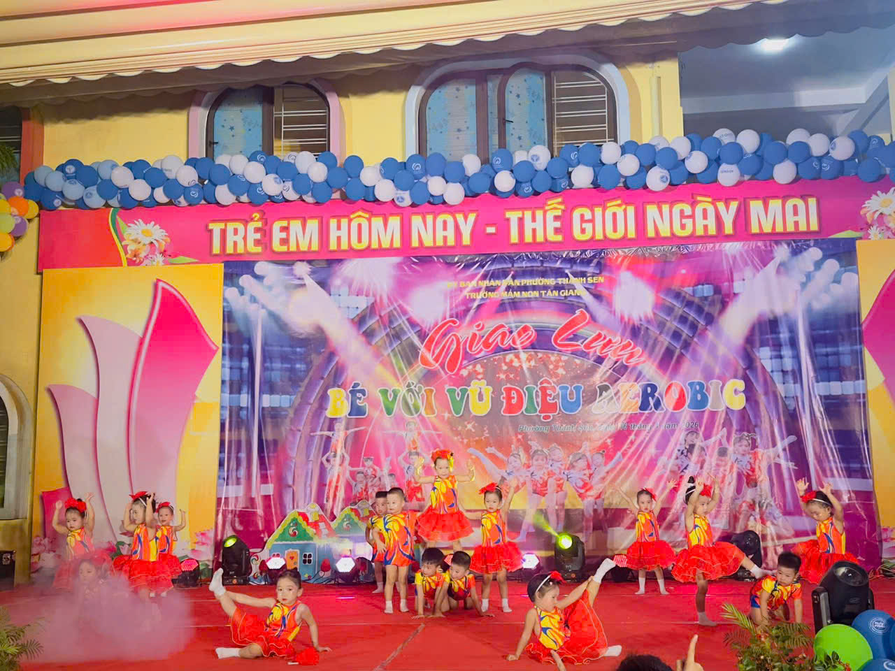 Thực hiện kế hoạch hoạt động năm học, hôm nay, ngày 16 tháng 4 năm 2026, Trường Mầm non Tân Giang đã tổ chức thành công chương trình giao lưu aerobic TỎA SÁNG TÀI NĂNG NHÍvới sự tham gia sôi nổi của các lớp.
