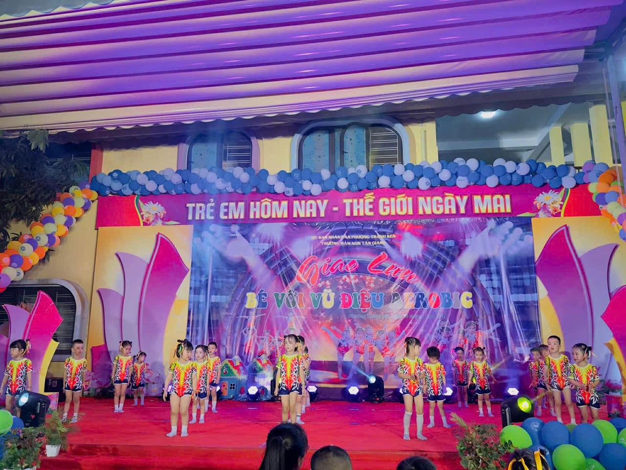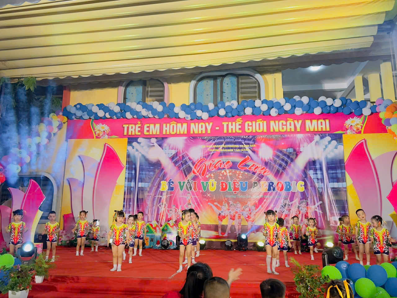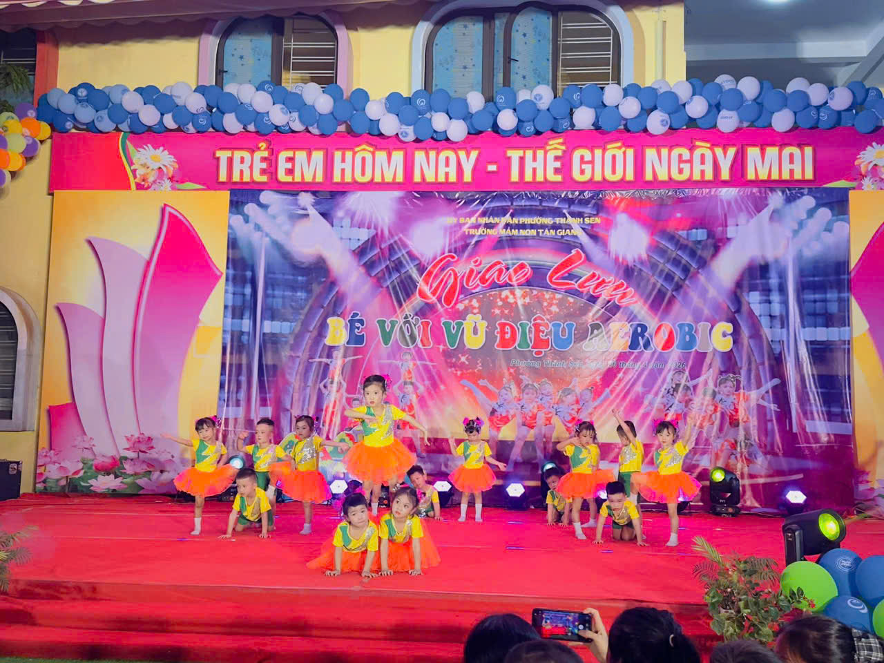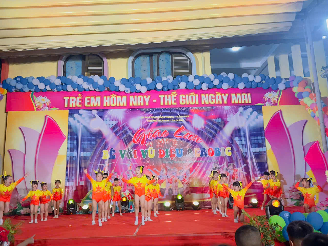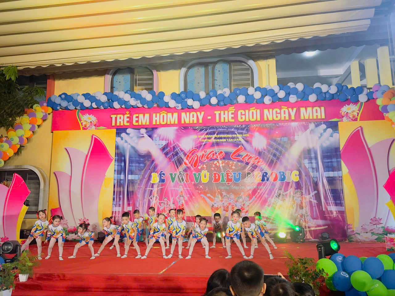 Thực hiện kế hoạch hoạt động năm học, hôm nay, ngày 16 tháng 4 năm 2026, Trường Mầm non Tân Giang đã tổ chức thành công chương trình giao lưu aerobic TỎA SÁNG TÀI NĂNG NHÍvới sự tham gia sôi nổi của các lớp.