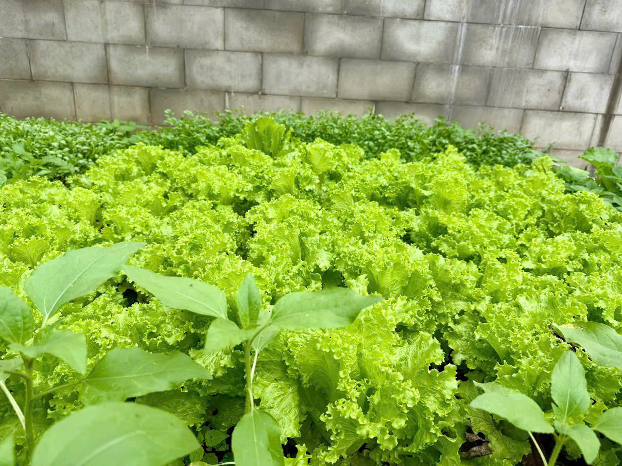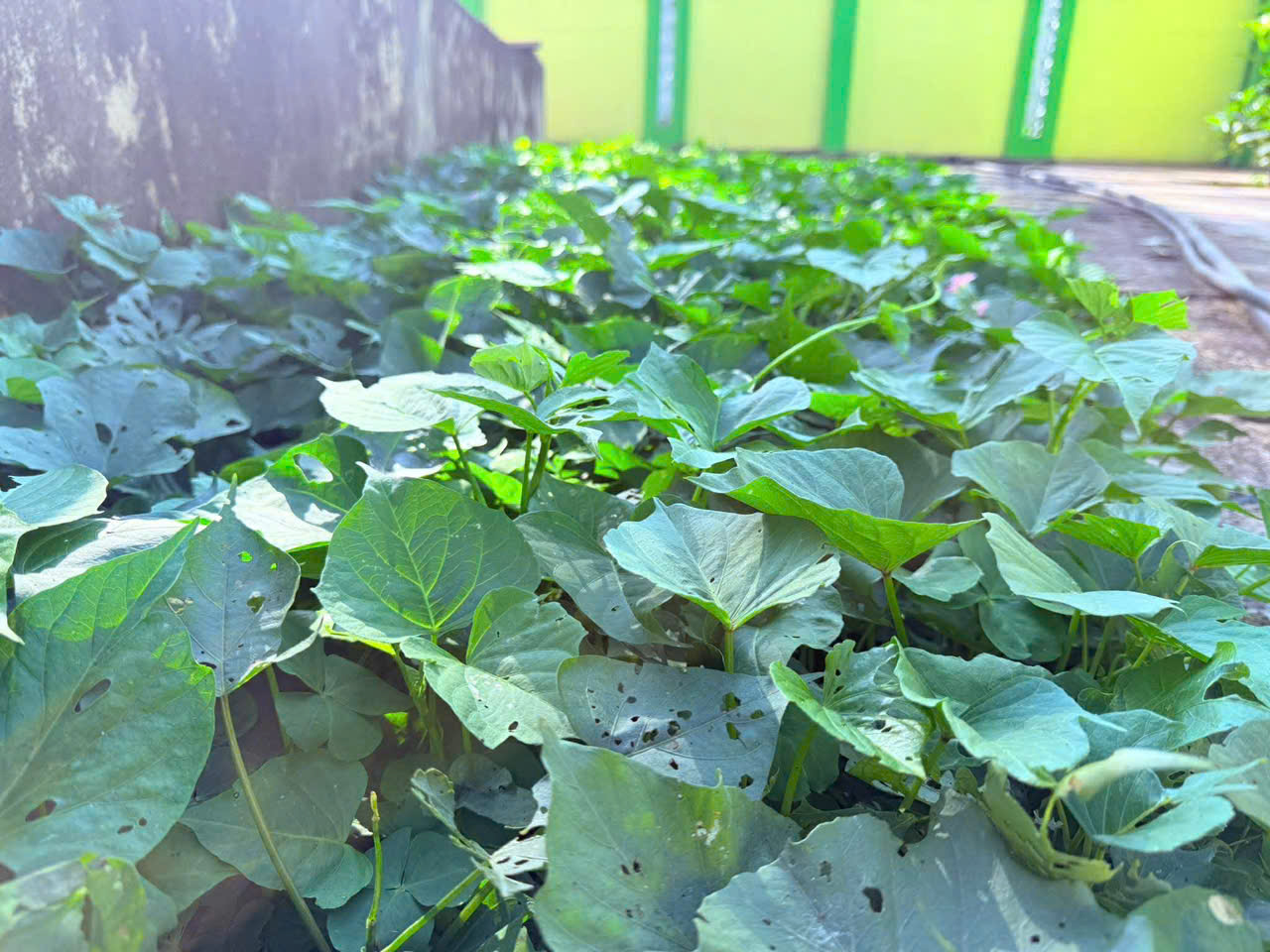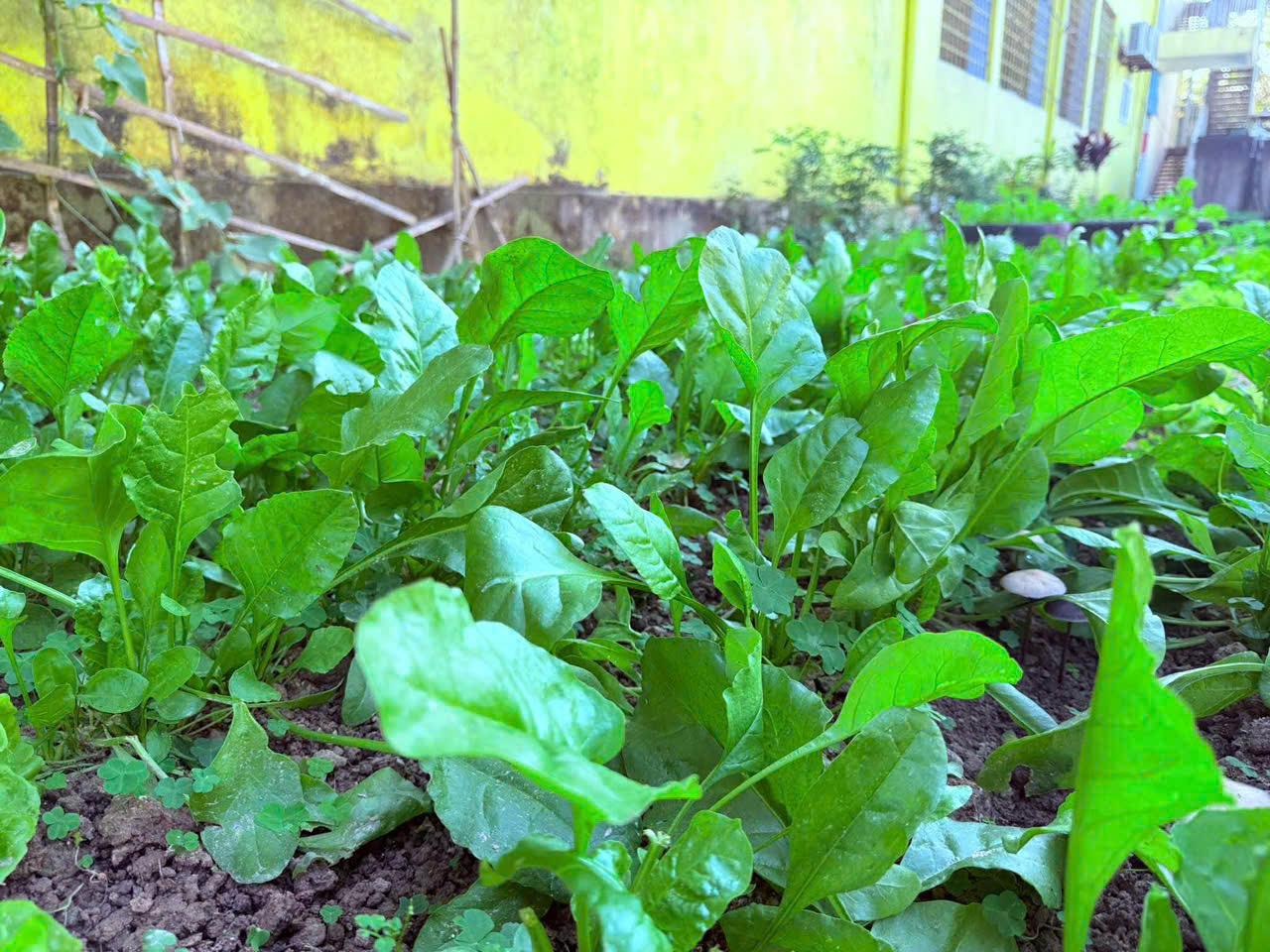 Vườn rau xanh tươi tốt, tràn đầy sức sống của trường
