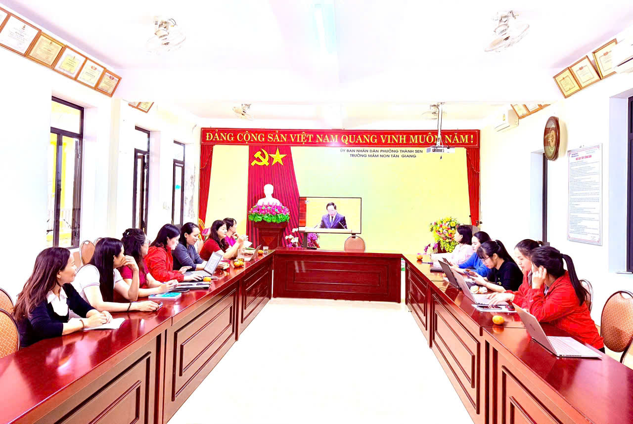 Hôm nay, ngày 25 tháng 02 năm 2026, tập thể Chi bộ trường MN Tân Giang đã tham gia đầy đủ, nghiêm túc "Hội nghị toàn quốc nghiên cứu, học tập, quán triệt và triển khai thực hiện Nghị quyết số 79-NQ/TW của Bộ Chính trị về phát triển kinh tế nhà nước và Nghị quyết số 80-NQ/TW của Bộ Chính trị về phát triển văn hóa Việt Nam". Hội nghị đã truyền đạt những nội dung cốt lõi, những điểm mới và các nhiệm vụ, giải pháp trọng tâm cần tập trung thực hiện trong thời gian tới; đồng thời định hướng rõ trách nhiệm của cấp ủy, tổ chức Đảng và từng cán bộ, Đảng viên trong quá trình triển khai thực hiện.