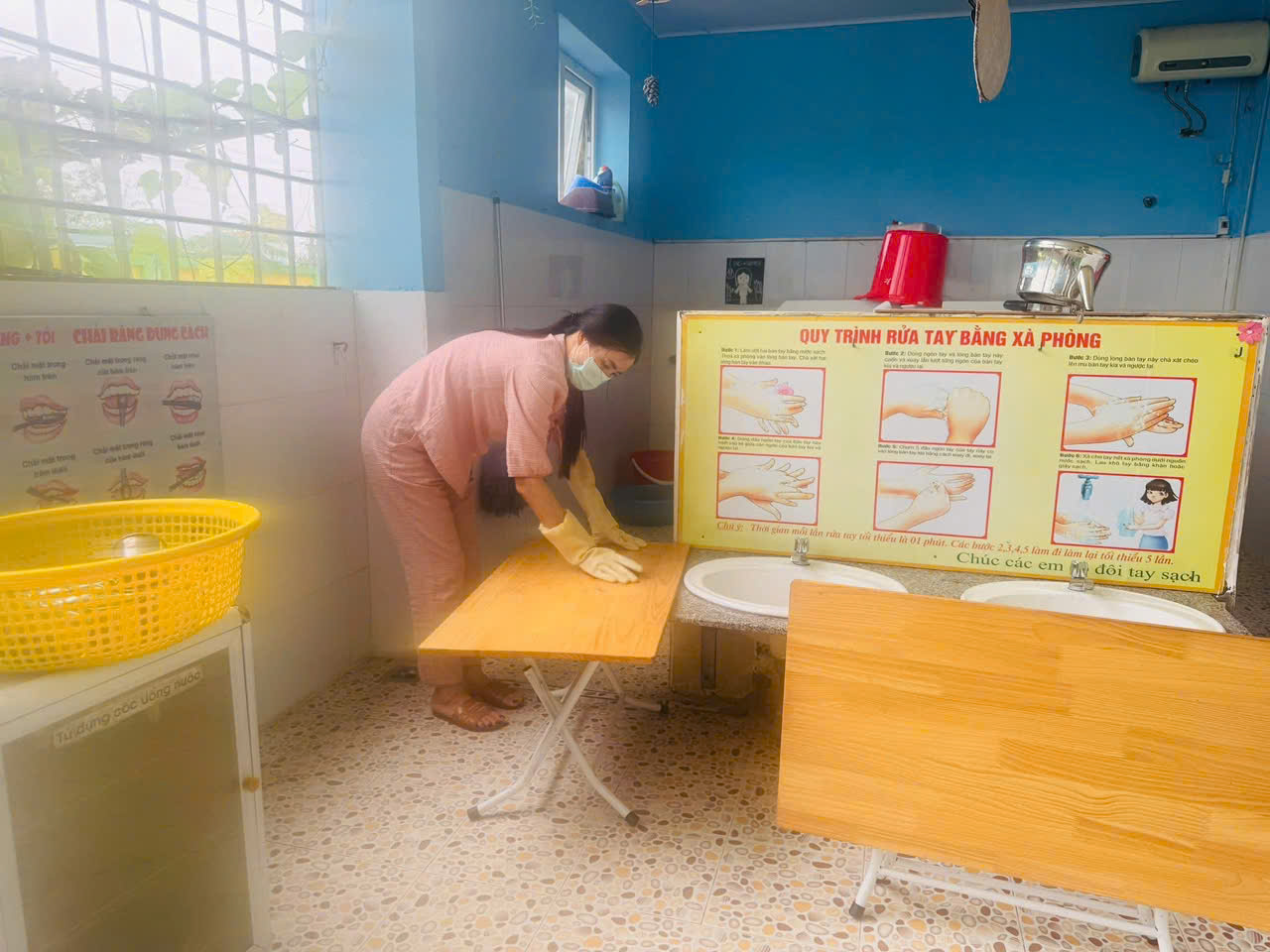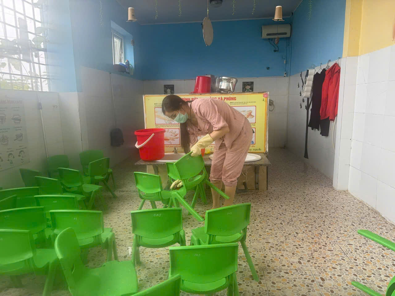 ✅ Vệ sinh, khử khuẩn toàn bộ lớp học, đồ dùng – đồ chơi.